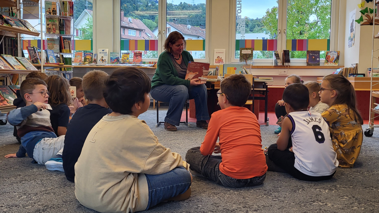 Ein besonderes Highlight war die Lesung aus dem Buch „Pippilothek – Eine Bibliothek wirkt Wunder“ von Lorenz Pauli und Kathrin Schärer. Gebannt lauschten die Kinder der Geschichte vom schlauen Fuchs und der cleveren Maus, die zeigen, wie aufregend und hilfreich Bücher sein können.